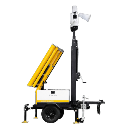 A fully autonomous mobile security trailer that combines AI-powered video surveillance, 360° PTZ cameras, lighting deterrents, and remote monitoring to deliver 24/7 protection for construction sites, parking lots, events, and other high-risk locations.